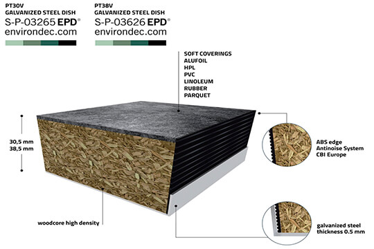 Панель фальшпідлоги CBI Europe, ДСП з м’яким покриттям, низ захищений оцинкованою сталлю 0,5мм