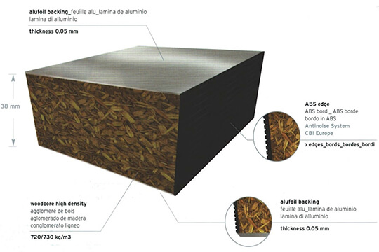 Панель фальшпідлоги CBI Europe, ДСП зверху і знизу покрита алюмінієвою фольгою 0,05мм