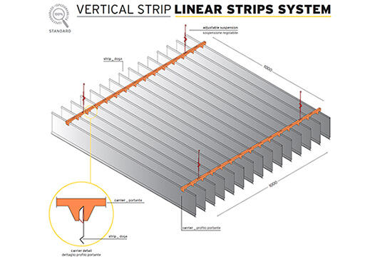 Рейкова металева стеля Vertical Linear Strips System CBI Europe